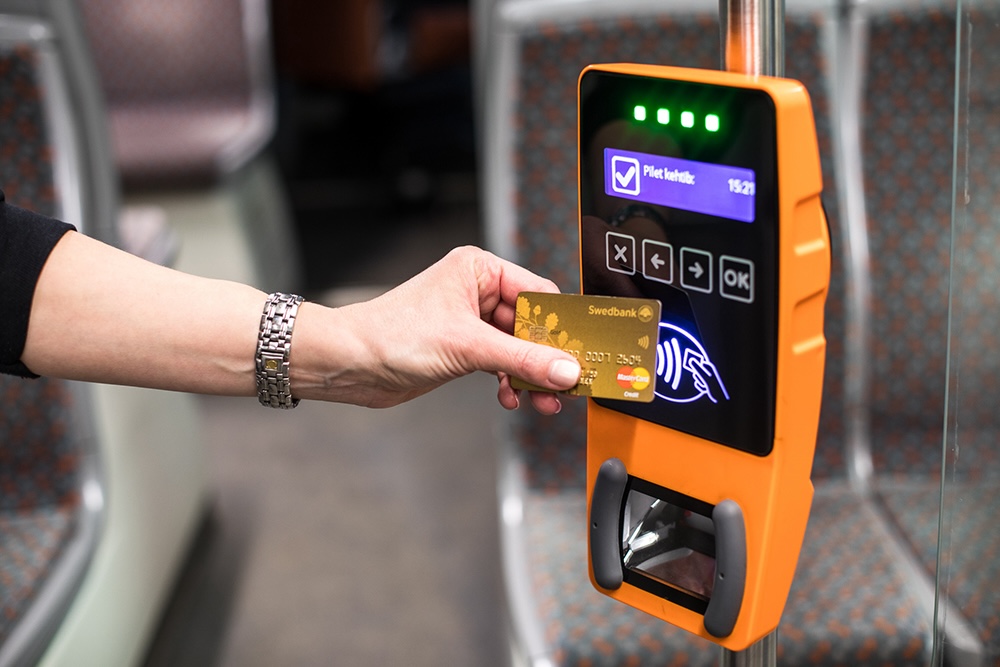 A one-hour ticket for €2 can be purchased from the ticket reader by using contactless payment with a bank card. The payment terminal that accepts bank cards is located at the front of the vehicle, near the driver. Hold your card against the reader. A green light will indicate if the payment was successful.