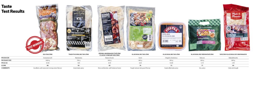 For The Baltic Guide’s test, we selected all the traditional šašlõkk products sold at Tallinn’s Prisma supermarket—a total of seven varieties. Around fifty other pre-marinated meats were also available on the shelves, including turkey options.