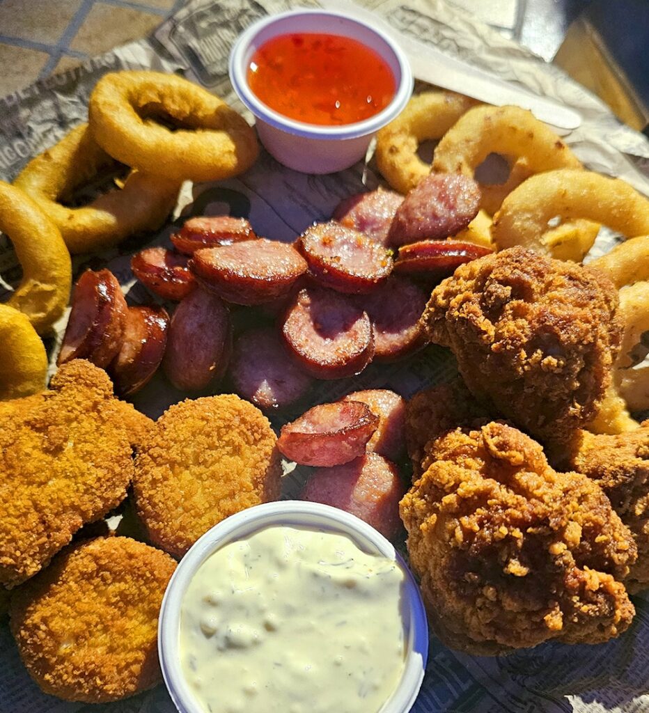 Illalla suuntamme Baar Ro-Ro Art Clubille, jossa en ole aiemmin käynyt. Baari on sisältä oikein viihtyisä ja sopivasti boheemi. Tilaan valkoviinin ja napostelulautasen sisältä. Viini on huoneenlämpöistä, mutta saa kelvata. Napostelulautanen sen sijaan yllättää: lautanen kukkuroillaan kalmarirenkaita, sipulirenkaita, makkaraa, kanaa ja juustoja. Istun ulkona joen äärellä nauttien herkkulautasestani ja hämärtyvästä lauantai-illasta.
