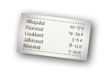 Yli 20 annosta ja juomaa pöydässä eikä tämä edes kata koko ravintolan ruokalistaa.