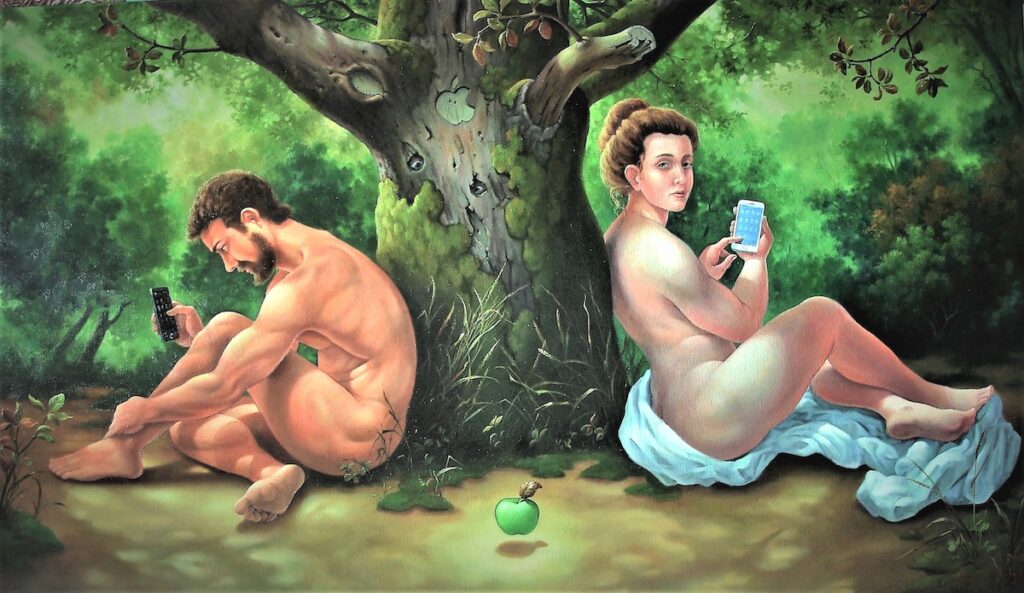 Taidenäyttely Mies ja nainen – La Paloma kertoo tarinoita rakkaudesta niin universaalilla kuin henkilökohtaisella tasolla. Kuvassa Aleksander Mihhaltšukin maalaus Applen työpaikat.