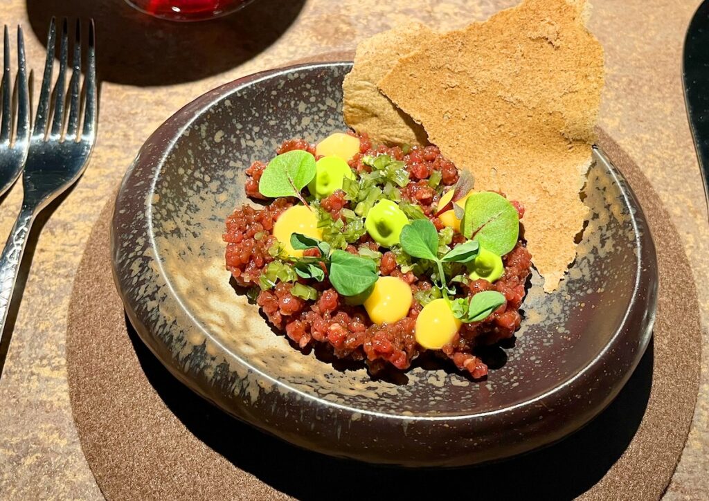 Sen sijaan viiriäisen munilla höystetty tartar-annos oli erittäin onnistunut. Raakaliha-annoksessa on selvät, vahvat maut aasialaisella tvistillä. Hento savun maku sopi annokseen erinomaisesti.