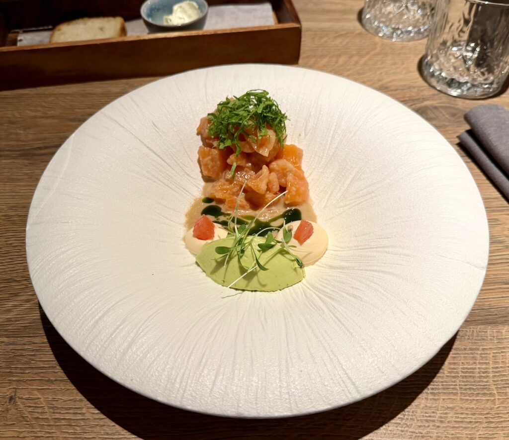 Puhtaan makuinen Saarenmaan taimen-ceviche tarjoiltiin terävän maustekastikkeen ja avokadon kera. Kala oli suussa sulavan pehmeää.