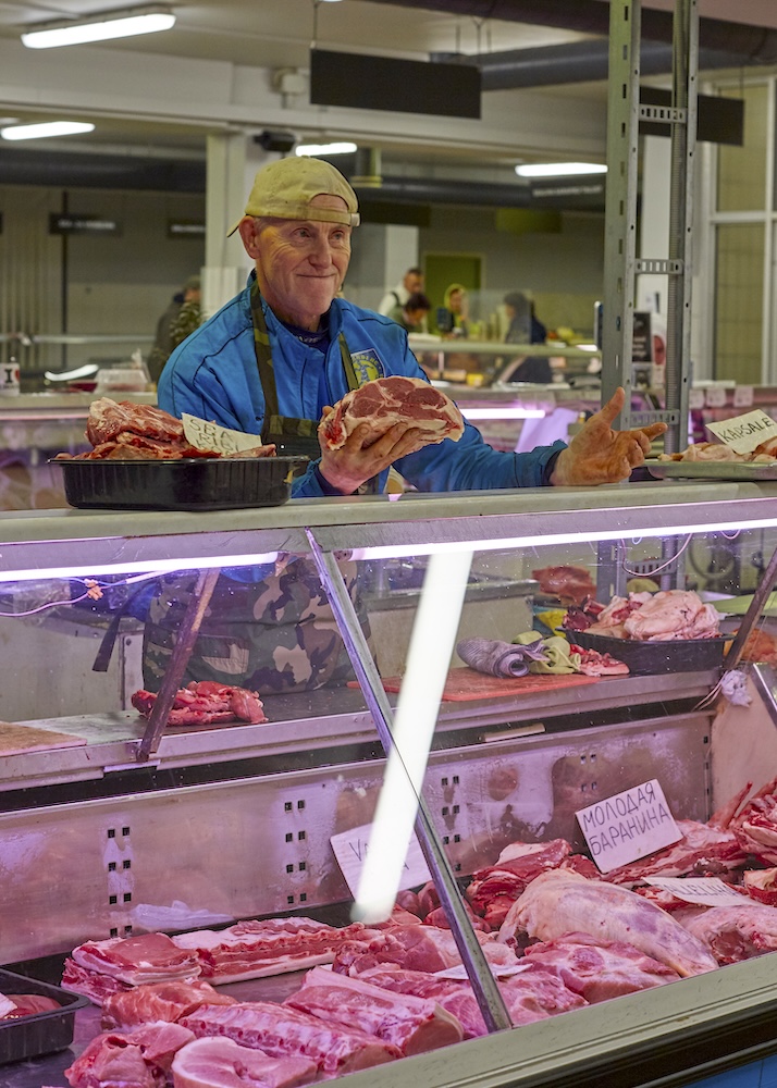 Endel on pitänyt lihakauppaa jo yli 40 vuotta. Hän ei suunnittele enää jatkavansa uudella torilla, vaan aikoo jäädä ansaitulle eläkkeelle. ”Olen vanhan koulukunnan miehiä. Minua ei enää kiinnosta uusi tori. Tämä vanha keskustori on se aito ja oikea. Uusi tulee olemaan sellainen ostoskeskus. Hienohan siitä varmasti tulee, mutta ei se ole enää sama paikka”, napauttaa Endel ja hymyilee kameralle. Ennen vanhaan hänellä oli oma lammastila, jonka lihatuotteita hän myi. Nyt Endelin tiskiltä löytyy muiden tilallisten lihoja. Haastattelun lomassa Endel antaa koirille suuret suupalat nautaa, josta pienet hampaat tekevät nopeasti selvää.