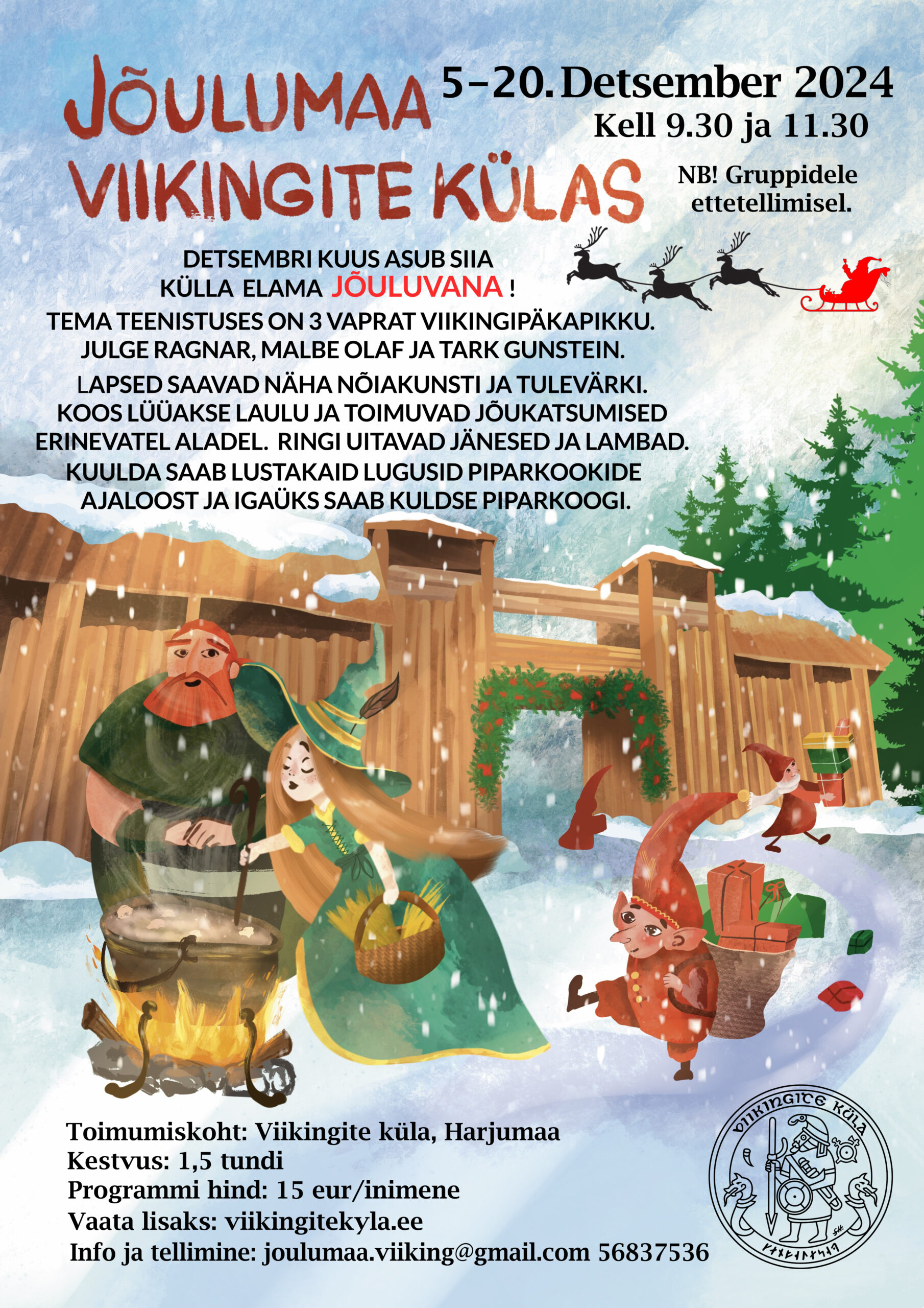 Joulun aikaan Viikinkikylässä vietetään vuoden suurinta juhlaa. Kylään saapuvia tervehtii kolme iloista viikinkitonttua, jotka toivottavat jokaisen lämpimästi tervetulleeksi. Lapsille on luvassa jännittäviä taikatemppuja ja huikeita tulinäytöksiä. Lisäksi tilalla on kotieläimiä, joita kävijät voivat käydä tervehtimässä.