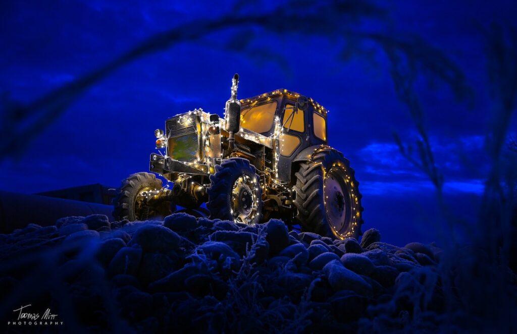 Mutta meillä on myös paikallisten aloitteesta syntynyt kaunis talvinen tapahtuma, joka valaisee talvista pimeyttä ja joka on saanut myös kansainvälistä huomiota Green Destinations Top 100 Stories -julkaisussa. Se on raskaiden koneiden romantiikka -tapahtuma, missä juhlapyhien ajaksi koneet koristellaan jouluvaloilla. Reitin löydät kartalta.