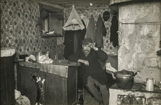 Hans Soosaar kuvasi 1920-luvulla Tallinnan Kalamajan alueen asukkaita. Kuvassa on osoitteessa Wäike Batarei / Väike-Patarei 2–7 asunut Jüri. Soosaar oli kirjoittanut kuvan taakse, että jalkansa vammauttanut Jüri oli 75-prosenttisesti työkyvytön eikä käynyt töissä, toisin kuin vaimonsa. Koti oli pimeässä kellariasunnossa, jonka vuokra oli 500 kruunua. Pariskunnalla oli alivuokralaisia.