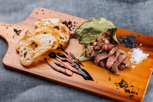 Hiilloksella kypsennetty marmoripihvi on näyttävä annos. Kuva: Lauri Laan