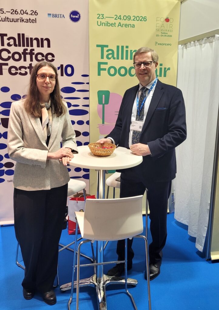 Samaan aikaan kun tuote-esittelijät maistattivat antimiaan, jakoi Helsingin Messukeskuksen edustajana Virossa toimivan ProfExpon toimitusjohtaja Tiit Sarv tietoa yleisölle Tallinnan tämänvuotisista ruokatapahtumista. Gastron virolaisvastinetta eli syyskuussa Unibet Arenalla järjestettävää FoodFair 2026 -ammattitapahtumaa edeltää jo keväällä kaikille matkailijoillekin avoimet kahvikarkelot eli Tallinn Coffee Festival.