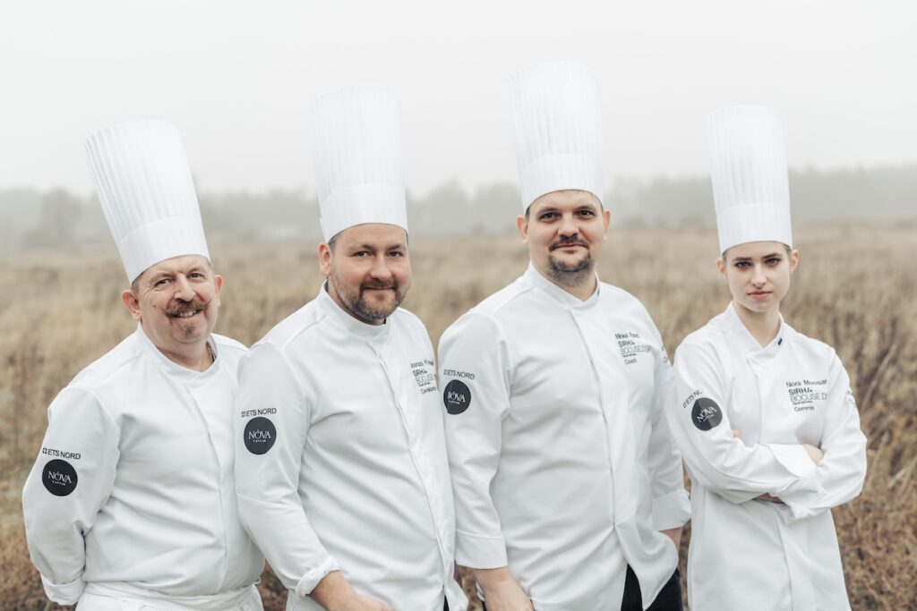 Bocuse d’Or -joukkue vasemmalta oikealle: presidentti Emmanuel Wille, kandidaatti Joonas Koppel, valmentaja Mihkel Rand ja assistentti Nora Moosar.