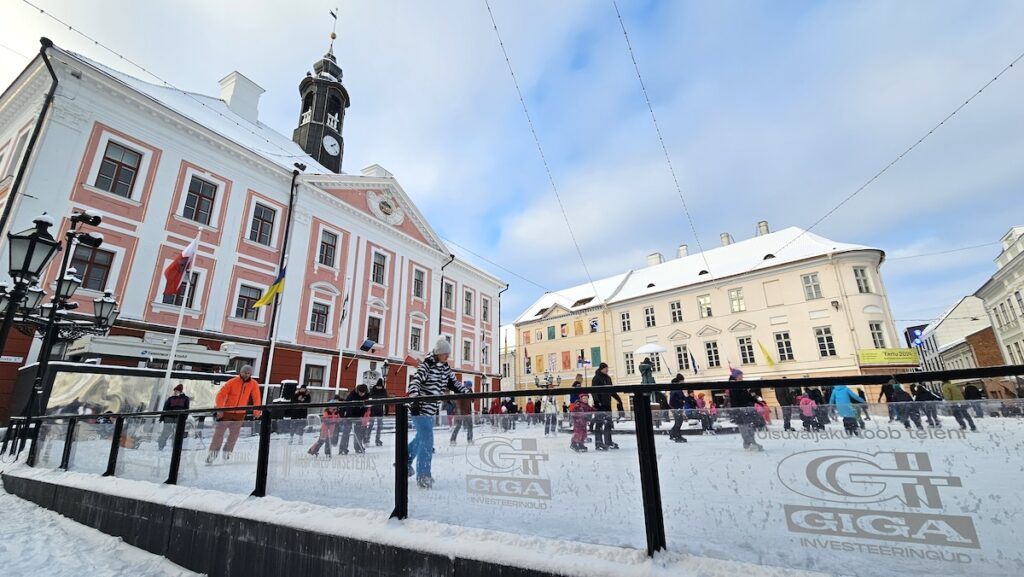 Tarton joulukaupunki on ainutlaatuinen paitsi Virossa myös koko Euroopassa. Kaupungin kaunis raatihuoneentori muuttuu vuosittain talviseksi satumaaksi. Raatihuoneen edustalla on luistinrata, jonka keskelle jää Tarton yksi kuuluisimmista veistoksista, Suutelevat opiskelijat.